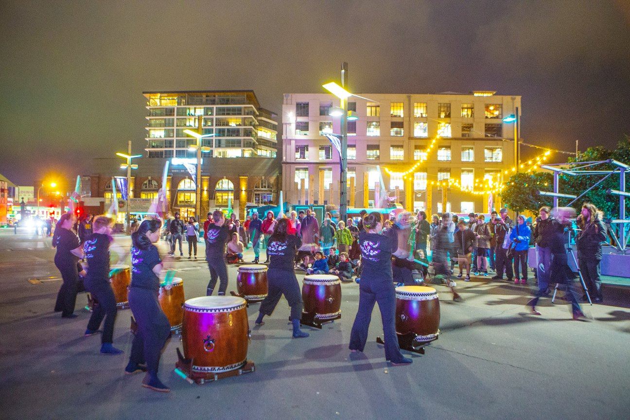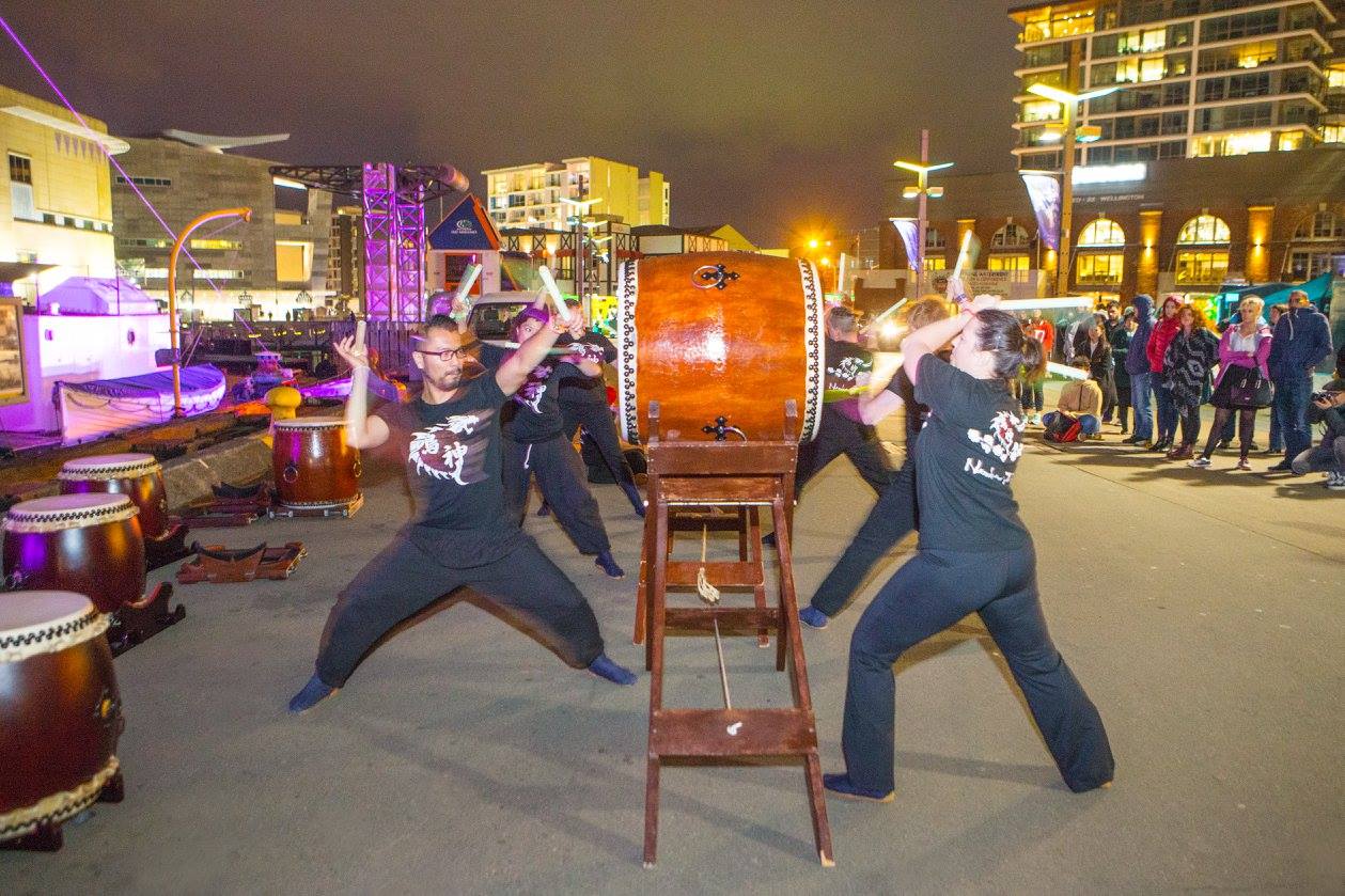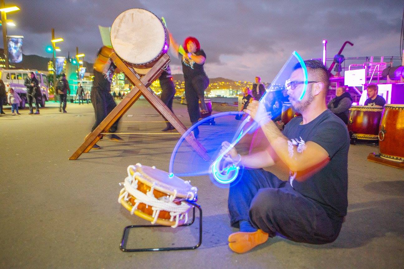 Narukami Taiko has a very similar philosophy, we love to bring light to hearts of many in Wellington, so we felt very proud to be making a return to the festival and putting on a show for the festival-goers. For us it has the added element of fun as it means we can pull out the glowing bachi and play in the dark !