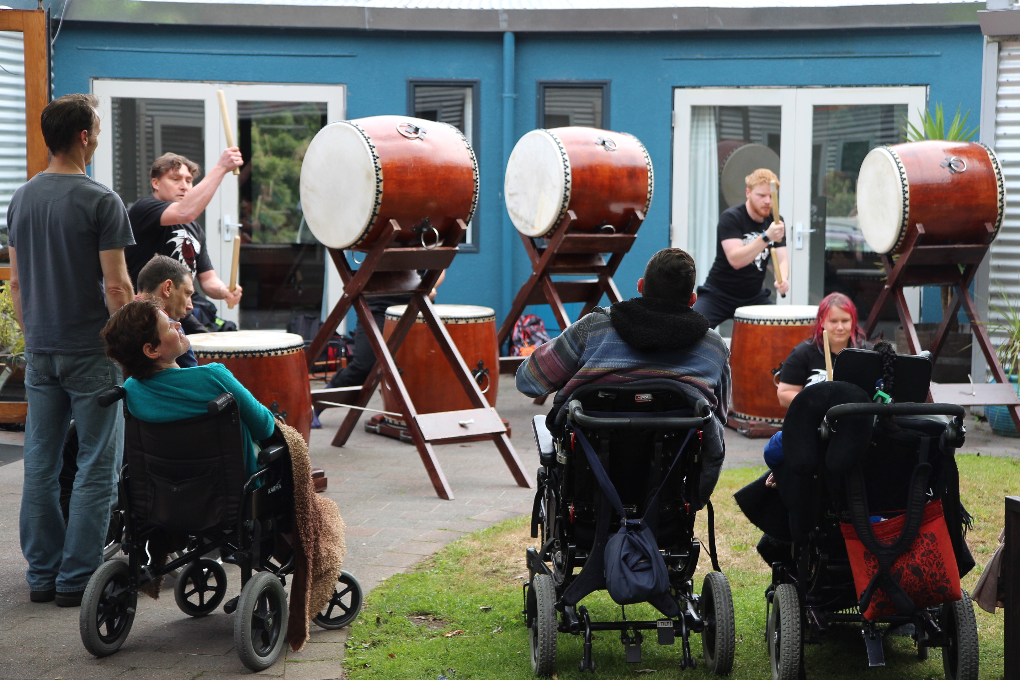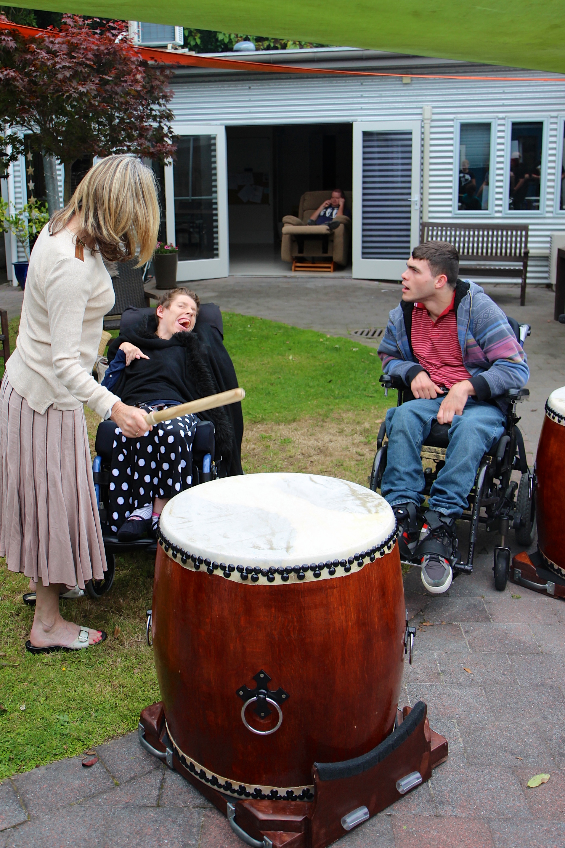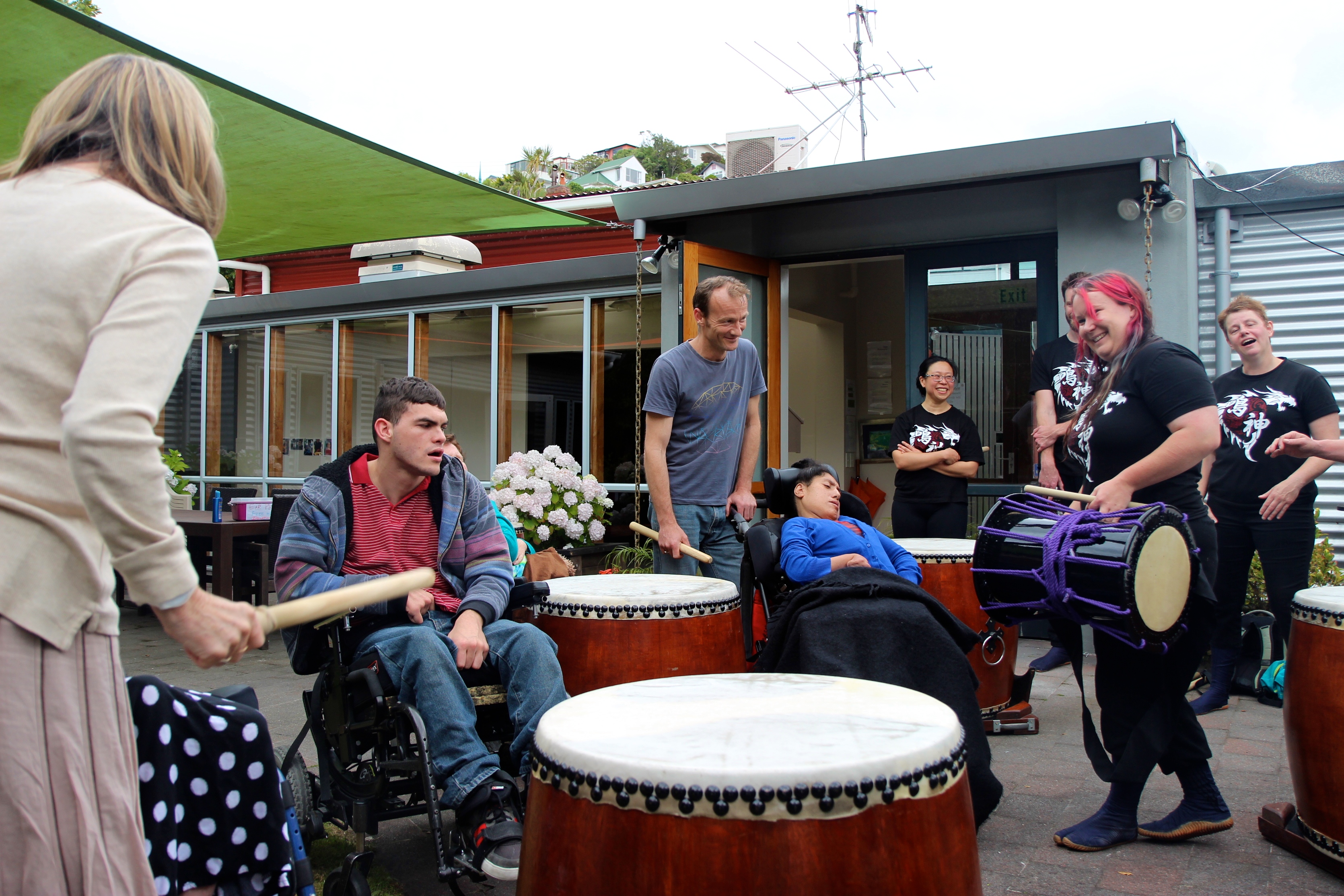 The team was also invited to perform to the residents of Argo Trust (http://www.argo.org.nz/). We arrived at the purposely built residence on an overcast day, silently pleading to Narukami to stave off the weather until we finish ! Our prayers were answered , the sun came out and we managed to perform without a hitch. In Narukami's honour, we played the song Gaina which emulates the god's name of thunder and lightning.