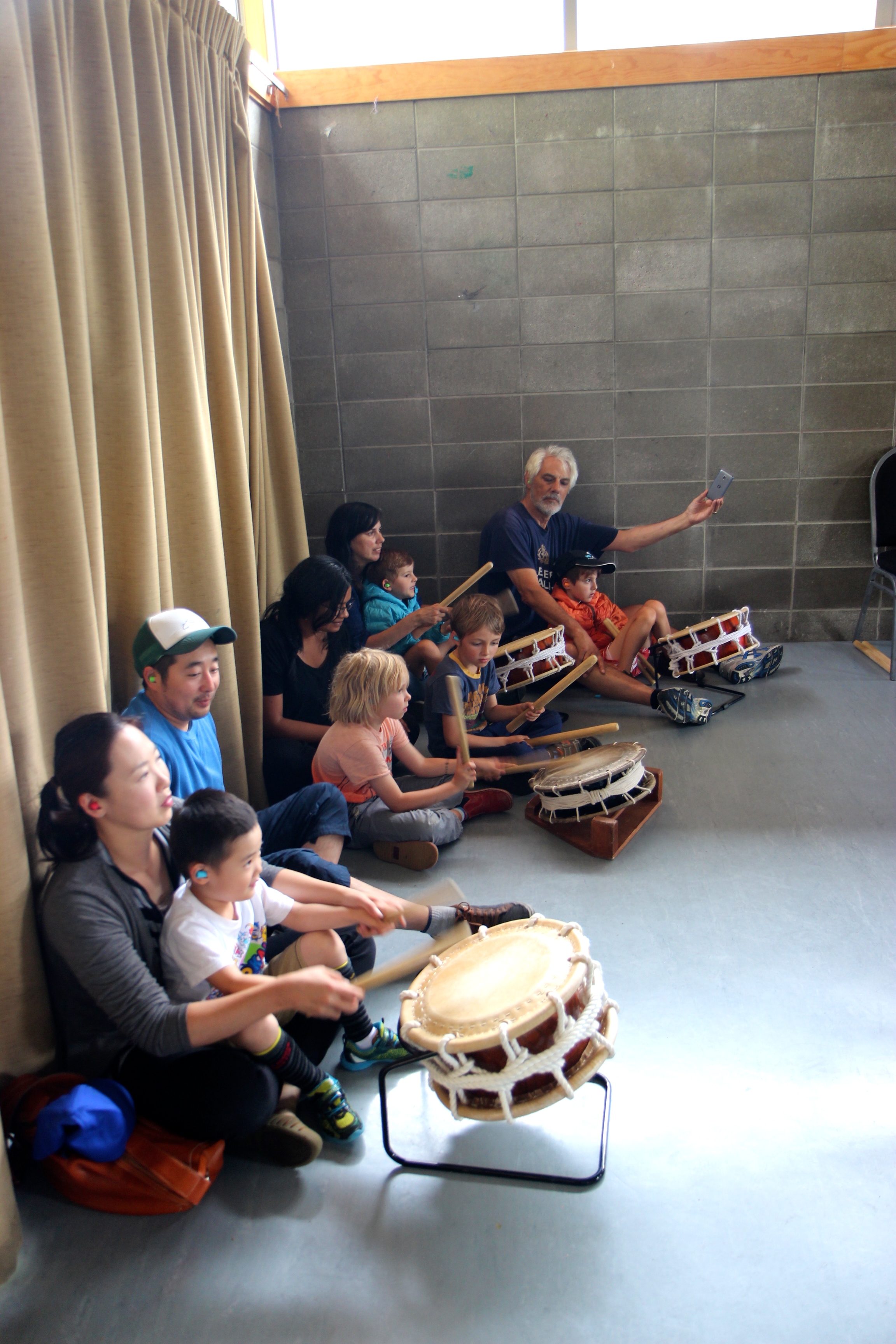 Narukami Taiko kicked off the morning with a performance to open the Festival in the building foyer. We drew a large crowd with a series of songs that echoed through the space. This was the first performance for three of our members, and the first time we'd performed the song Noto Hounen.