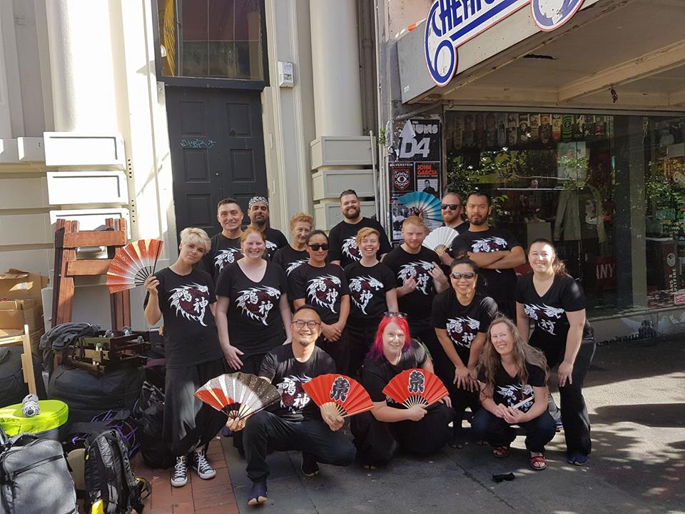 We ran out a few old favourites such as Wachi Daiko, where yet again we did battle and prevailed against the old demon, and Ujigawa where the graceful ladies of Narukami put on a wonderful rendition of the ancient Uji River to bring peace and tranquility to the hearts of the onlookers. For me personally, I was invited to take part in our performance of Arakusa for the very first time, and in the spirit of the song, it provided a moment of growth and accomplishment, this will always bring a smile to my face. Lastly for this segment we stepped up for Gaina. The wind in Wellington is something we’ve grown to love, and it played its part in this performance too as it saw fit to carry numerous spare bachi away from their players as they were hammering out the beats. We preferred to see this as the Gods of Thunder and Lightning showing themselves for the song and providing even more entertainment, mainly for the other players who were sat behind the performance watching and laughing !